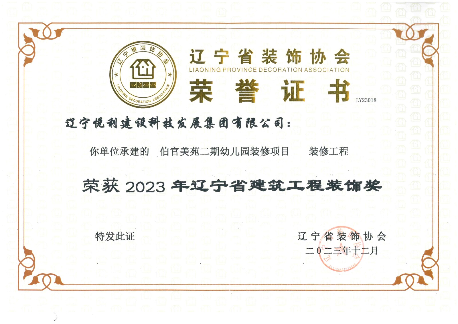 省-2023年辽宁省建筑工程装饰奖_伯官美苑二期幼儿园装修项目