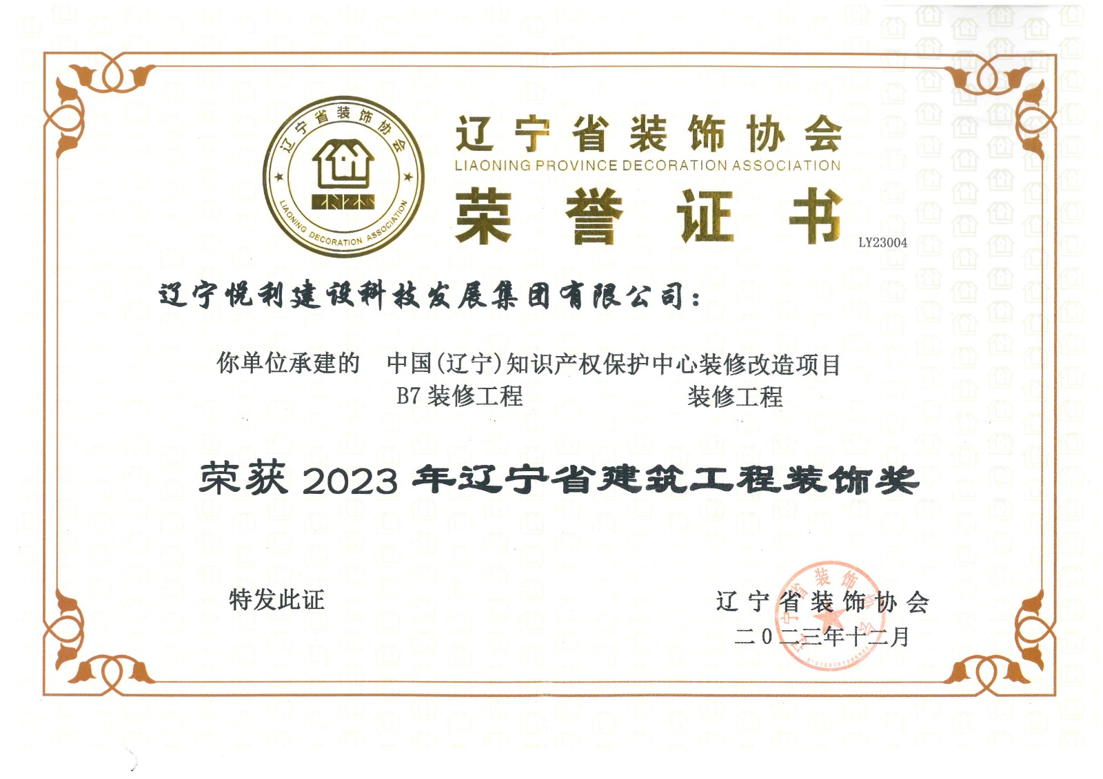 省-2023年辽宁省建筑工程装饰奖_中国(辽宁)知识产权 保护中心装修改造项目B7装修工程