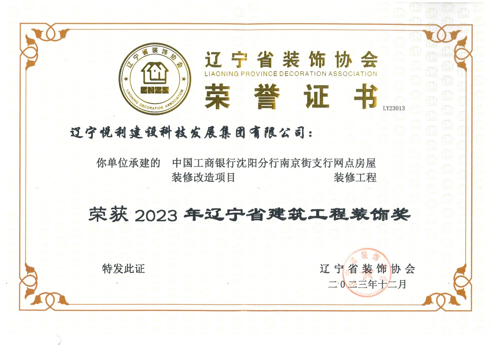 省-2023年辽宁省建筑工程装饰奖_中国工商银行沈阳分行南京街支行网点房屋装修改造项目
